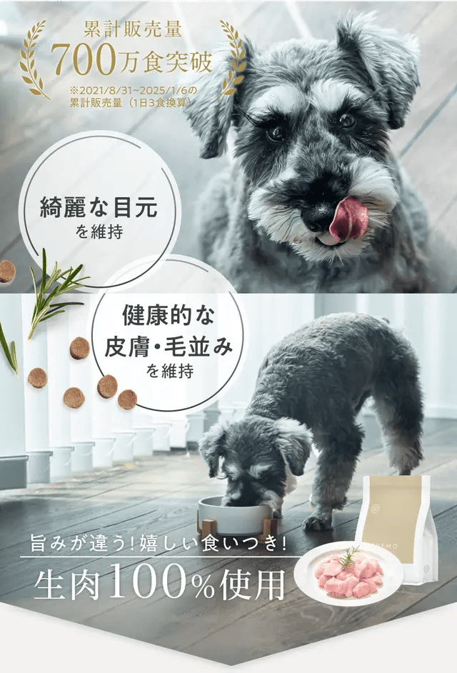 また、肉タイプのフードにも必須脂肪酸やアミノ酸、ビタミン類などが豊富に含まれており、さまざまな角度から愛犬の健康をサポートしてくれます。味わいだけでなく、栄養もしっかり考えて作られているので、目元や毛並みなど悩みを抱える飼い主さんにもおすすめです。